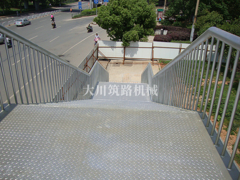特點(diǎn):本鋼橋主梁采用標(biāo)準(zhǔn)的“321鋼橋”現(xiàn)場(chǎng)安裝并用朔板包邊,梯道用型鋼、鋼板在廠內(nèi)加工好現(xiàn)場(chǎng)拼裝,達(dá)到安裝便捷、美觀、舒適的要求。本鋼橋安裝工期緊,安裝條件有限,大都只能得用晚間在封鎖交通的情況下安裝。